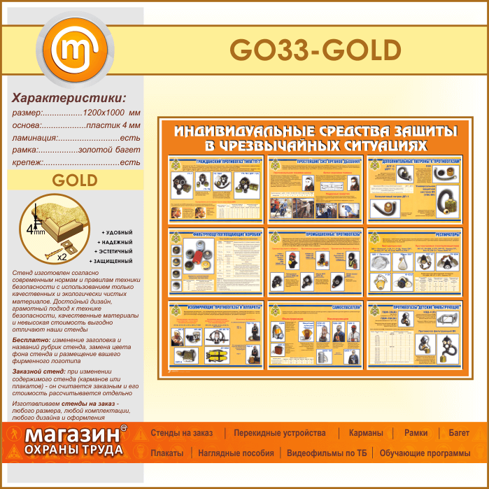 Стенд «Индивидуальные средства защиты в чрезвычайных ситуациях» (GO-33-GOLD) в Москве купить