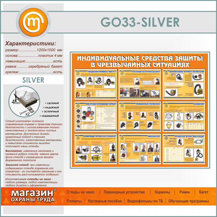 Стенд «Индивидуальные средства защиты в чрезвычайных ситуациях» (GO-33-SILVER) в Москве купить