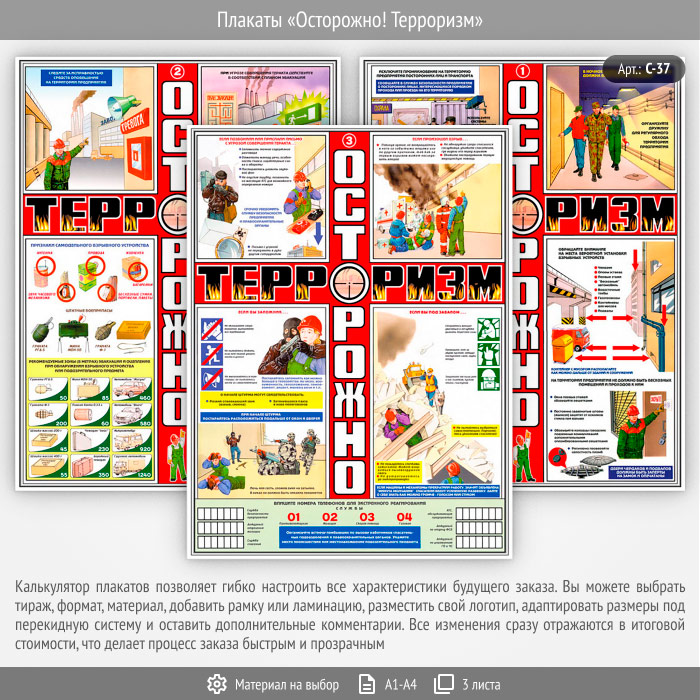 Плакаты «Осторожно! Терроризм» (С-37, 3 листа) в Москве купить