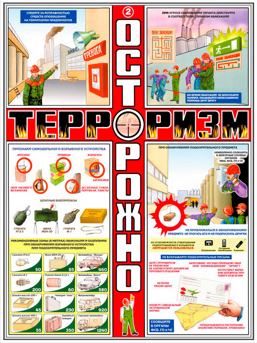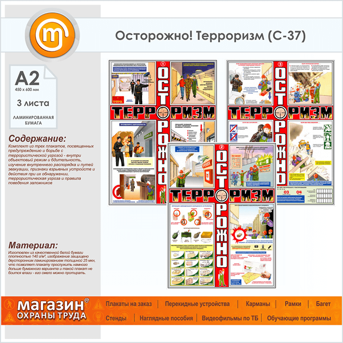 Плакаты «Осторожно! Терроризм» (С-37, ламинированная бумага, А2, 3 листа) в Москве купить