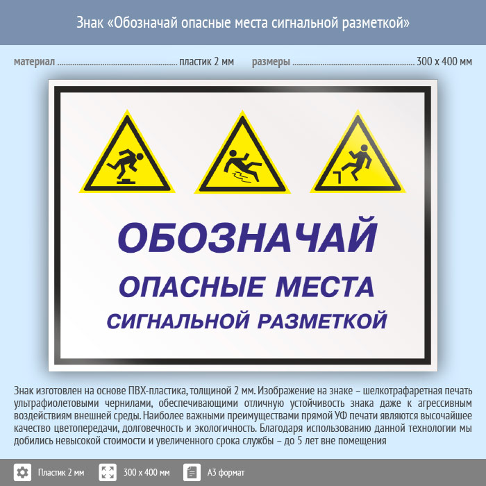 Знак «Обозначай опасные места сигнальной разметкой», КЗ-30 (пластик, 400х300 мм) в Москве купить