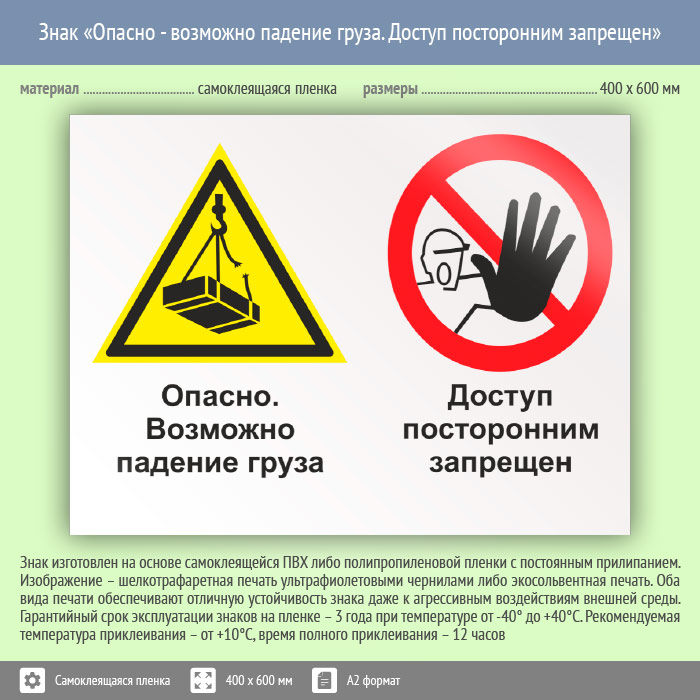 Знак «Опасно - возможно падение груза. Доступ посторонним запрещен», КЗ-33 (пленка, 600х400 мм) в Москве купить