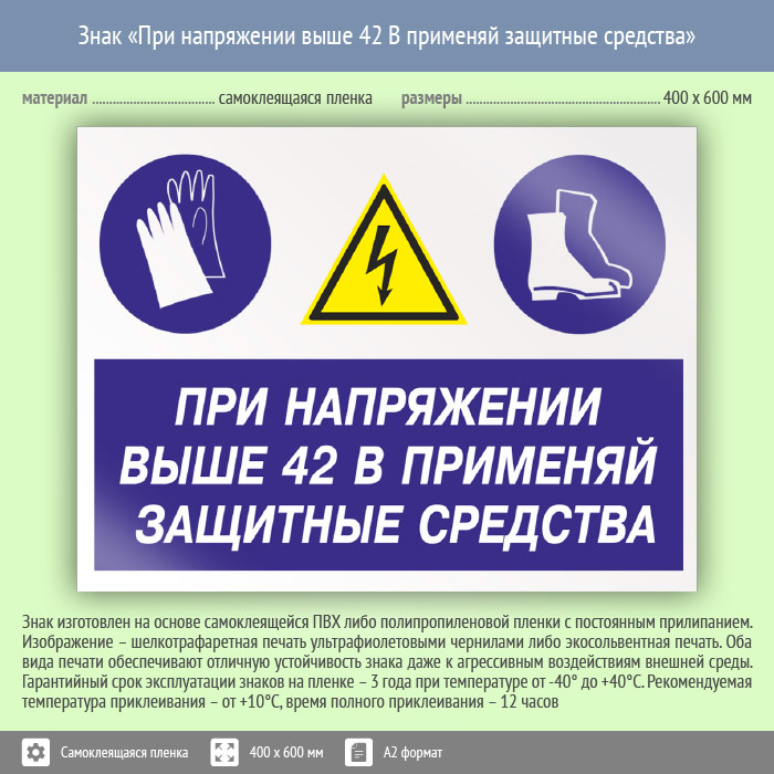 Знак «При напряжении выше 42 В применяй защитные средства», КЗ-72 (пленка, 600х400 мм) в Москве купить