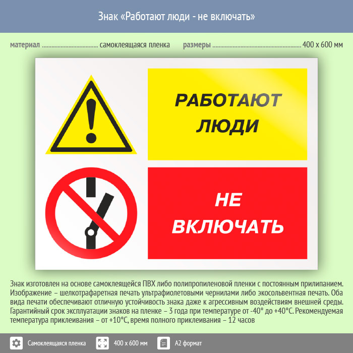 Знак «Работают люди - не включать», КЗ-83 (пленка, 600х400 мм) в Москве купить