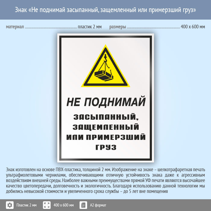 Знак «Не поднимай засыпанный, защемленный или примерзший груз», КЗ-27 (пластик, 400х600 мм) в Москве купить