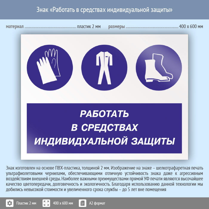 Знак «Работать в средствах индивидуальной защиты», КЗ-81 (пластик, 600х400 мм) в Москве купить