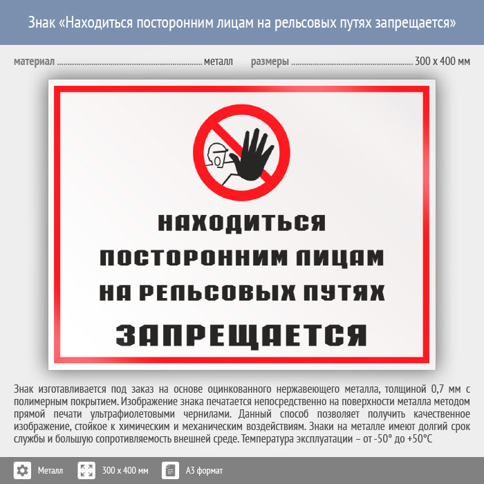 Знак «Находиться посторонним лицам на рельсовых путях запрещается», КЗ-25 (металл, 400х300 мм) в Москве купить