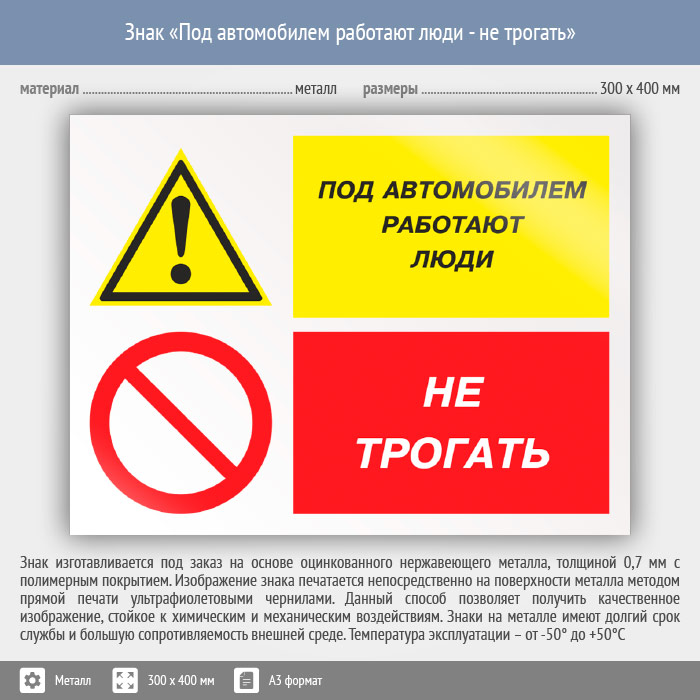 Знак «Под автомобилем работают люди - не трогать», КЗ-66 (металл, 400х300 мм) в Москве купить