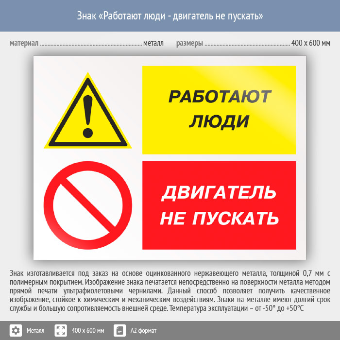Знак «Работают люди - двигатель не пускать», КЗ-82 (металл, 600х400 мм) в Москве купить