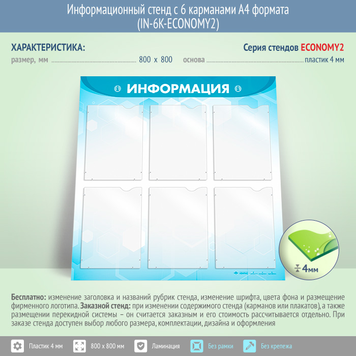 Информационный стенд с 6 карманами А4 формата (IN-6K-ECONOMY2) в Москве купить