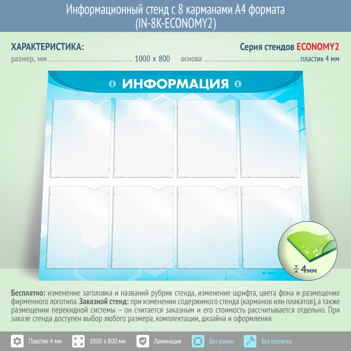 Информационный стенд с 8 карманами А4 формата (IN-8K-ECONOMY2) в Москве купить