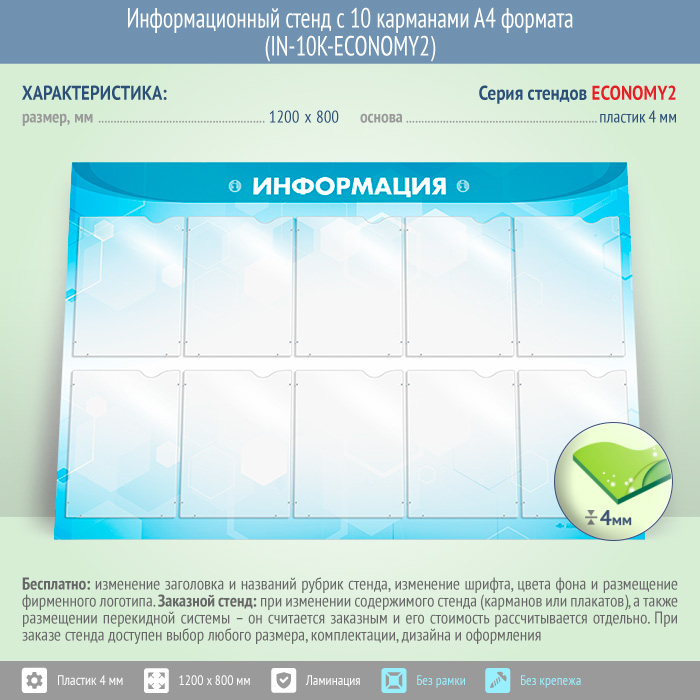 Информационный стенд с 10 карманами А4 формата (IN-10K-ECONOMY2) в Москве купить