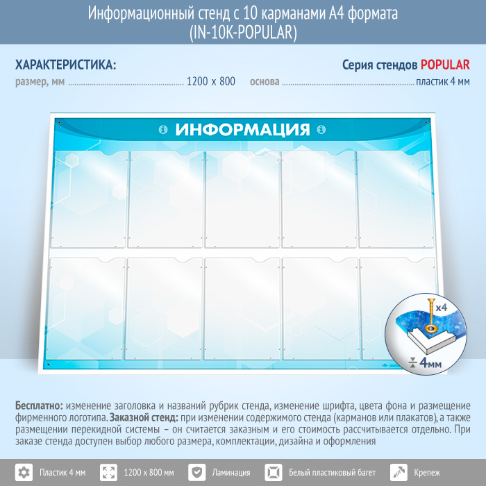 Информационный стенд с 10 карманами А4 формата (IN-10K-POPULAR) в Москве купить