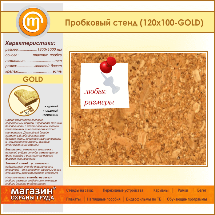 Пробковая доска, 120х100 см (IN-05-GOLD) в Москве купить