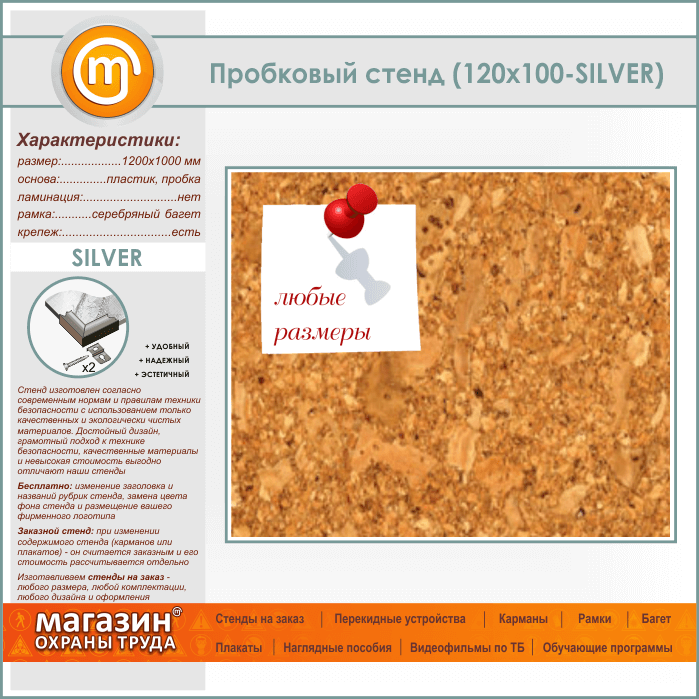 Пробковая доска, 120х100 см (IN-05-SILVER) в Москве купить