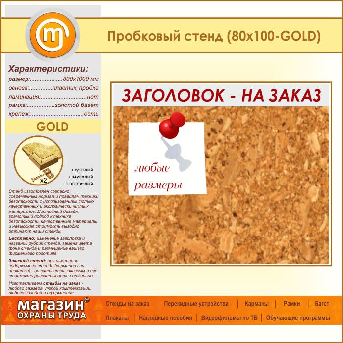 Пробковая доска с заголовком, 100х80 см (IN-06-GOLD) в Москве купить