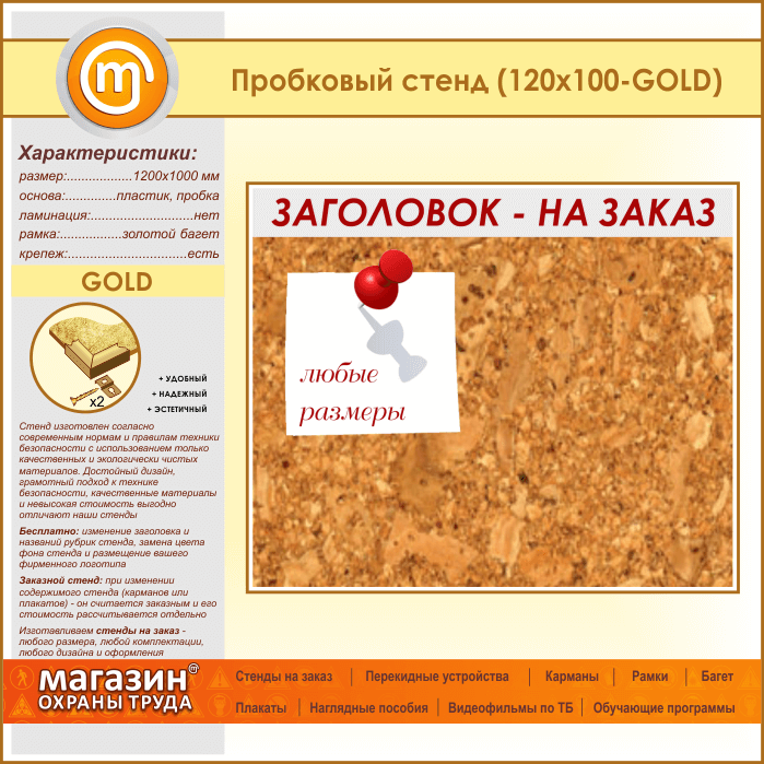 Пробковая доска с заголовком, 120х100 см (IN-06-GOLD) в Москве купить