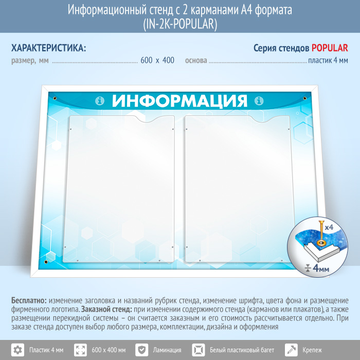 Информационный стенд с 2 карманами А4 формата (IN-2K-POPULAR)