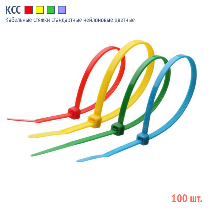 Кабельные стяжки стандартные нейлоновые цветные - КСС 4х200(син) (100 шт.) в Москве купить
