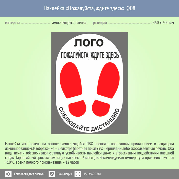 Наклейка на пол «Пожалуйста, ждите здесь», Q08 (пленка c ламинированием, 450х600 мм) в Москве купить