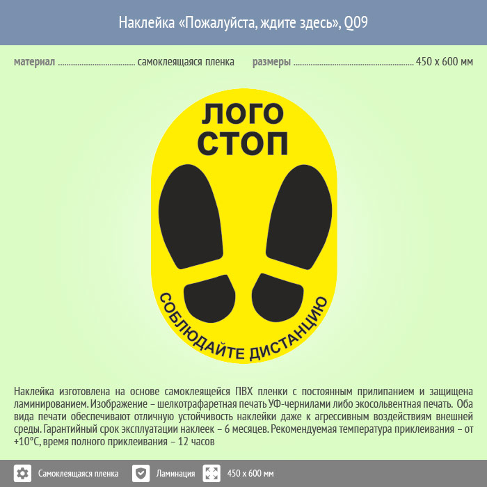 Наклейка на пол «Пожалуйста, ждите здесь», Q09 (пленка c ламинированием, 450х600 мм) в Москве купить