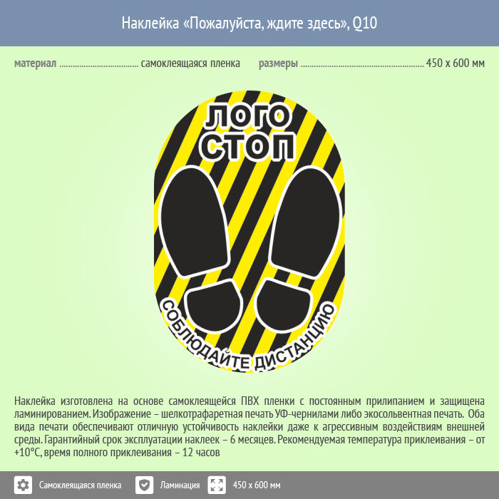 Наклейка на пол «Пожалуйста, ждите здесь», Q10 (пленка c ламинированием, 450х600 мм) в Москве купить