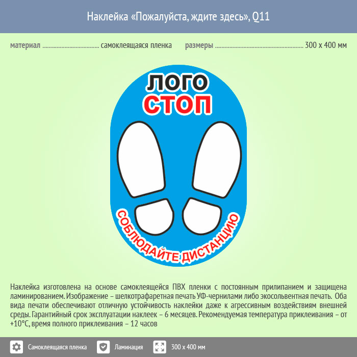Наклейка на пол «Пожалуйста, ждите здесь», Q11 (пленка c ламинированием, 300х400 мм) в Москве купить
