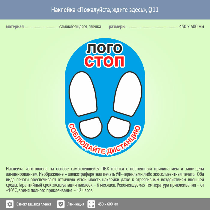 Наклейка на пол «Пожалуйста, ждите здесь», Q11 (пленка c ламинированием, 450х600 мм) в Москве купить