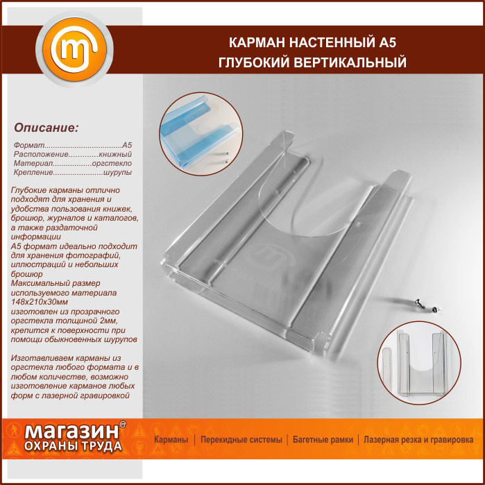 Карман настенный А5 объемный вертикальный в Москве купить