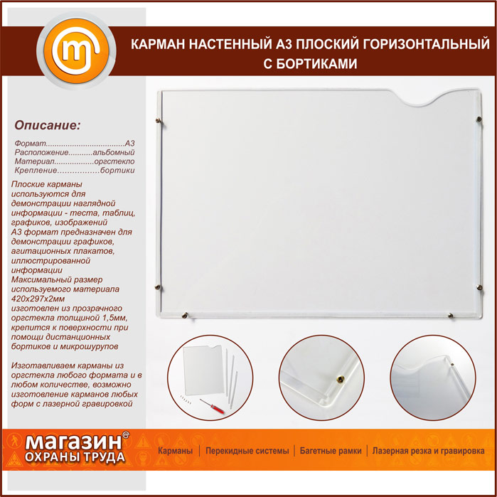 Карман настенный А3 плоский горизонтальный с бортиками в Москве купить
