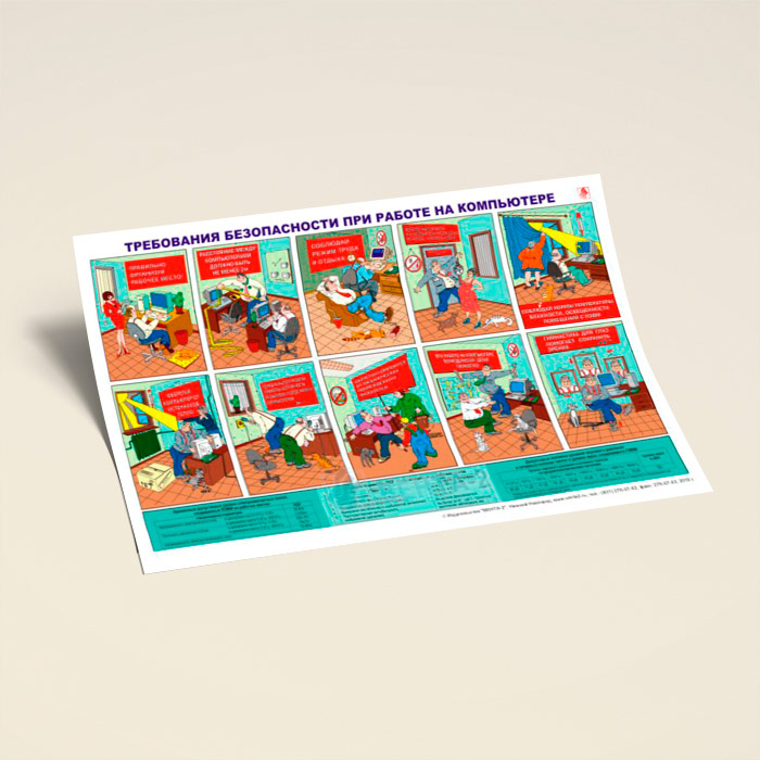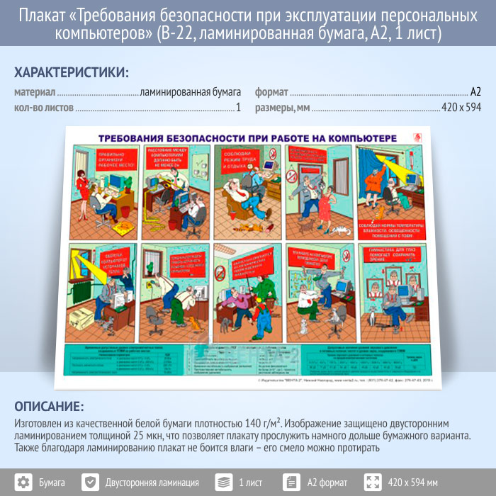 Плакат «Требования безопасности при эксплуатации персональных компьютеров» (В-22, ламинированная бумага, А2, 1 лист) в Москве купить