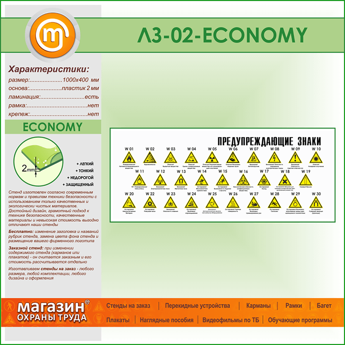 Стенд «Предупреждающие знаки» (LZ-02-ECONOMY) в Москве купить
