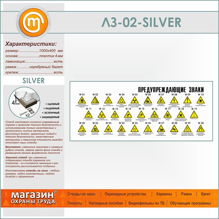 Стенд «Предупреждающие знаки» (LZ-02-SILVER) в Москве купить