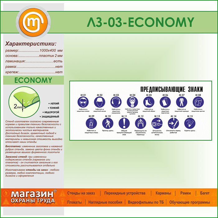 Стенд «Предписывающие знаки» (LZ-03-ECONOMY) в Москве купить