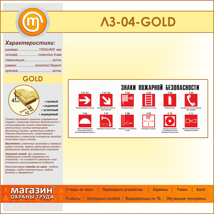 Стенд «Знаки пожарной безопасности» (LZ-04-GOLD) в Москве купить