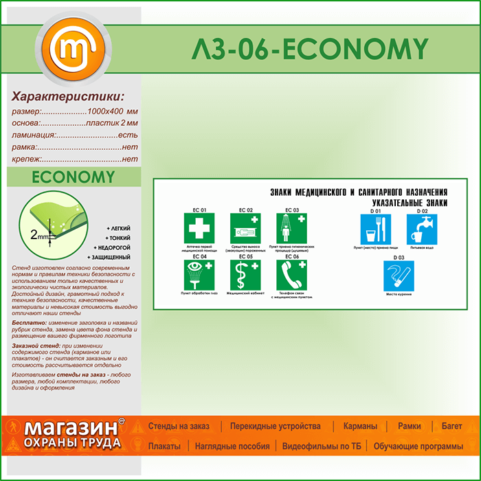 Стенд «Знаки медицинского и санитарного назначения. Указательные знаки» (LZ-06-ECONOMY) в Москве купить