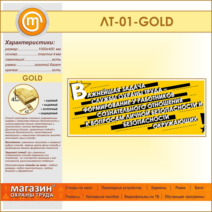 Лозунг «Важнейшая задача службы охраны труда...» (LT-01-GOLD) в Москве купить