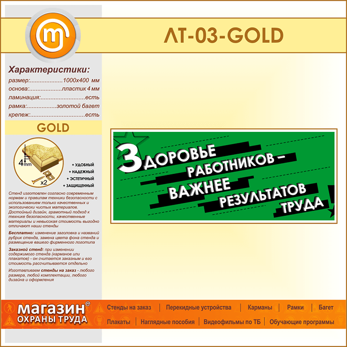 Лозунг «Здоровье работников - важнее результатов труда» (LT-03-GOLD) в Москве купить