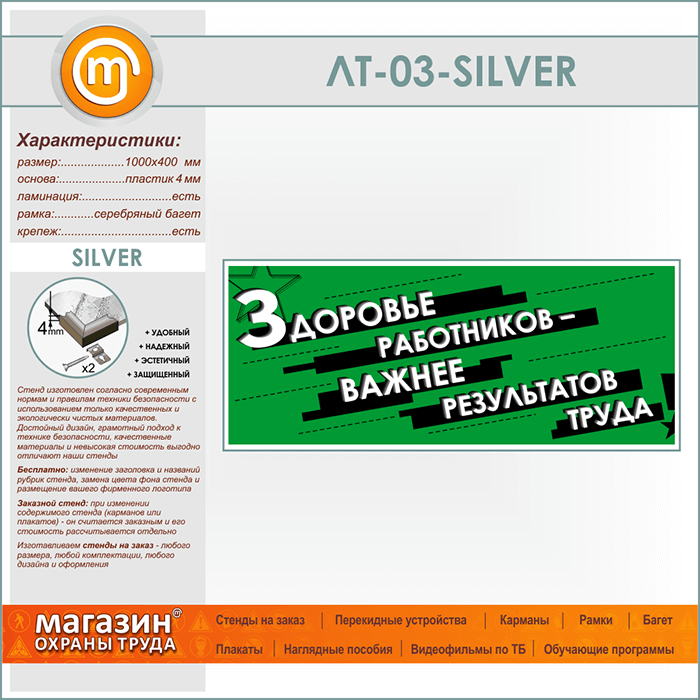 Лозунг «Здоровье работников - важнее результатов труда» (LT-03-SILVER) в Москве купить