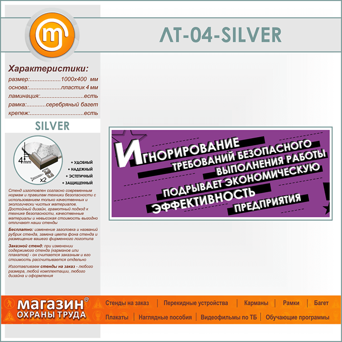 Лозунг «Игнорирование безопасного выполнения работы...» (LT-04-SILVER) в Москве купить