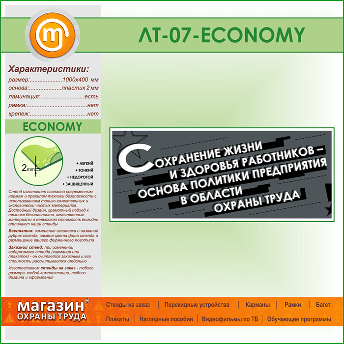 Лозунг «Сохранение жизни и здоровья работников...» (LT-07-ECONOMY) в Москве купить