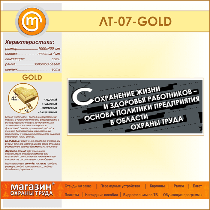 Лозунг «Сохранение жизни и здоровья работников...» (LT-07-GOLD) в Москве купить