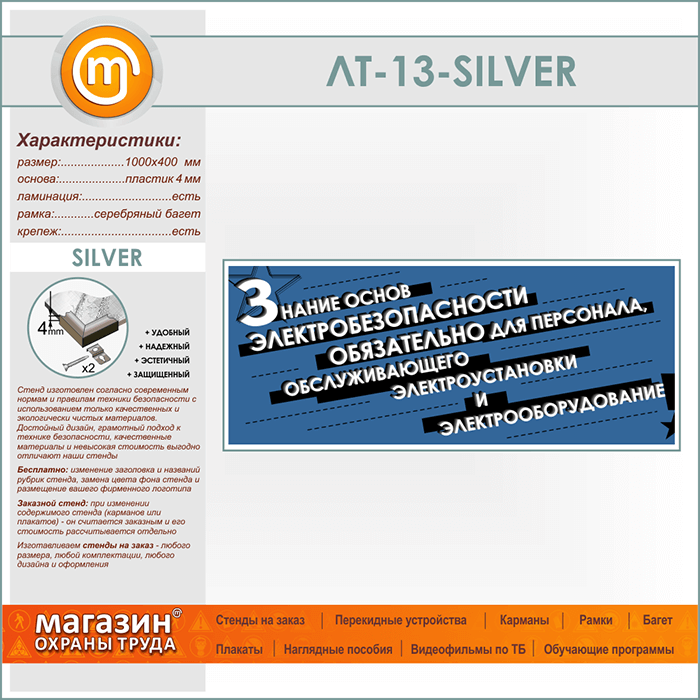 Лозунг «Знание основ электробезопасности обязательно...» (LT-13-SILVER) в Москве купить