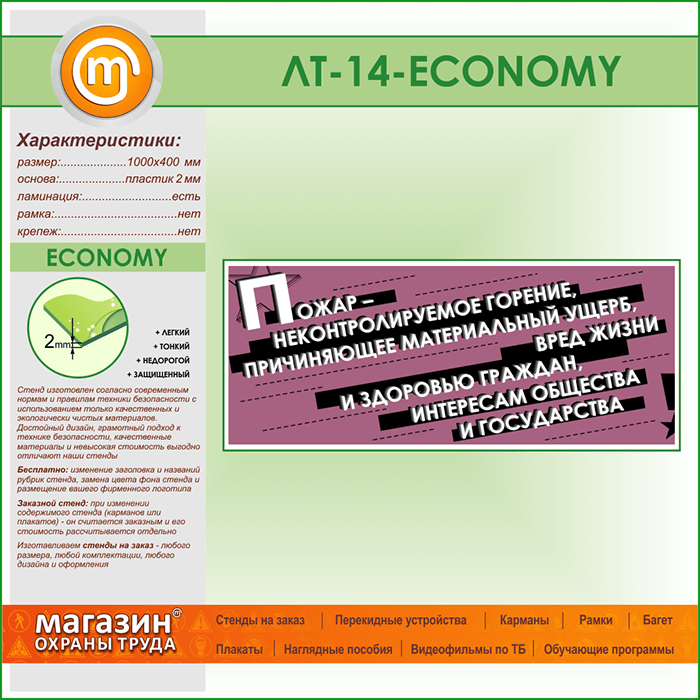 Лозунг «Пожар - неконтроллируемое горение...» (LT-14-ECONOMY) в Москве купить