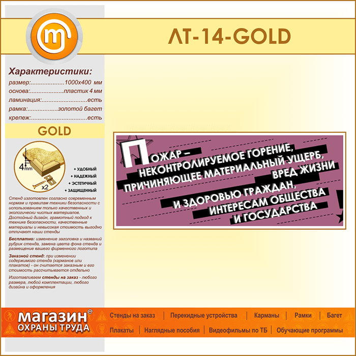 Лозунг «Пожар - неконтроллируемое горение...» (LT-14-GOLD) в Москве купить