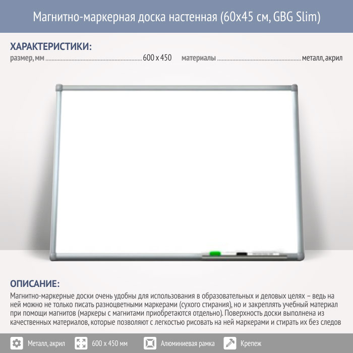 Магнитно-маркерная доска настенная (60x45 см, GBG Slim) в Москве купить