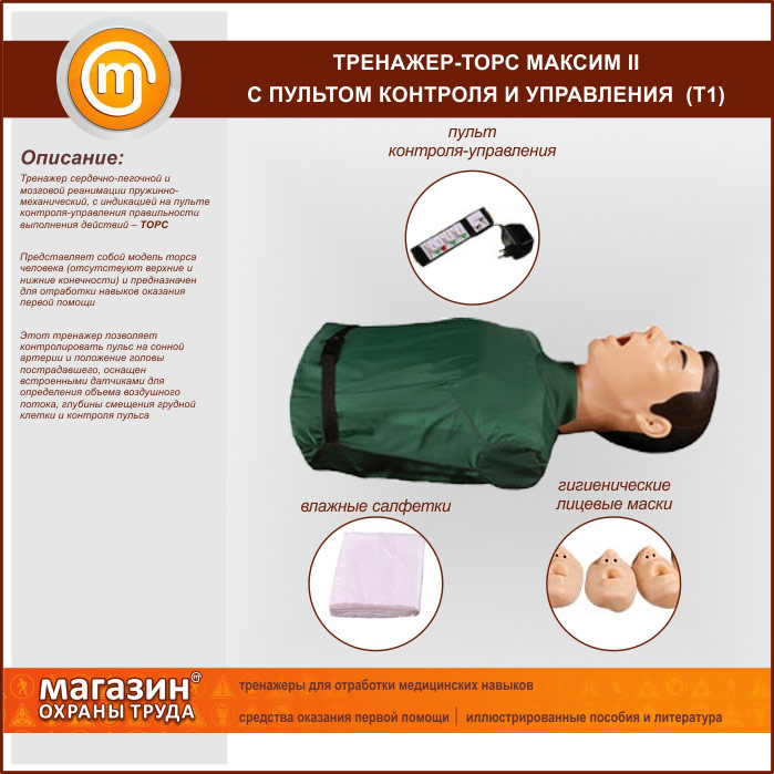 | Тренажер сердечно-легочной и мозговой реанимации «Максим I-01», Т10 В/Р (пружинно-механический, манекен) | Тренажер сердечно-легочной и мозговой реанимации «Максим I-01», Т10 В/Р (пружинно-механический, манекен) |