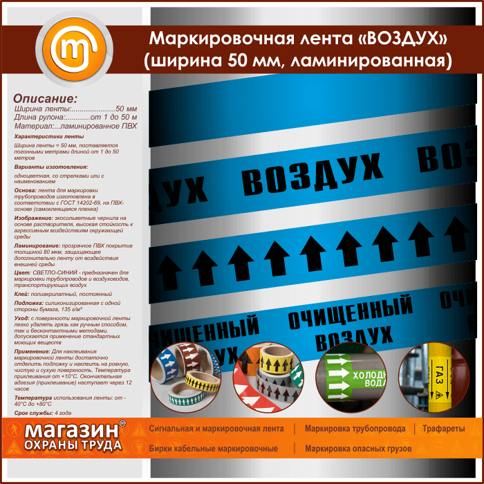 Маркировочная лента «ВОЗДУХ» (ширина 50 мм, самоклеящаяся плёнка) в Москве купить