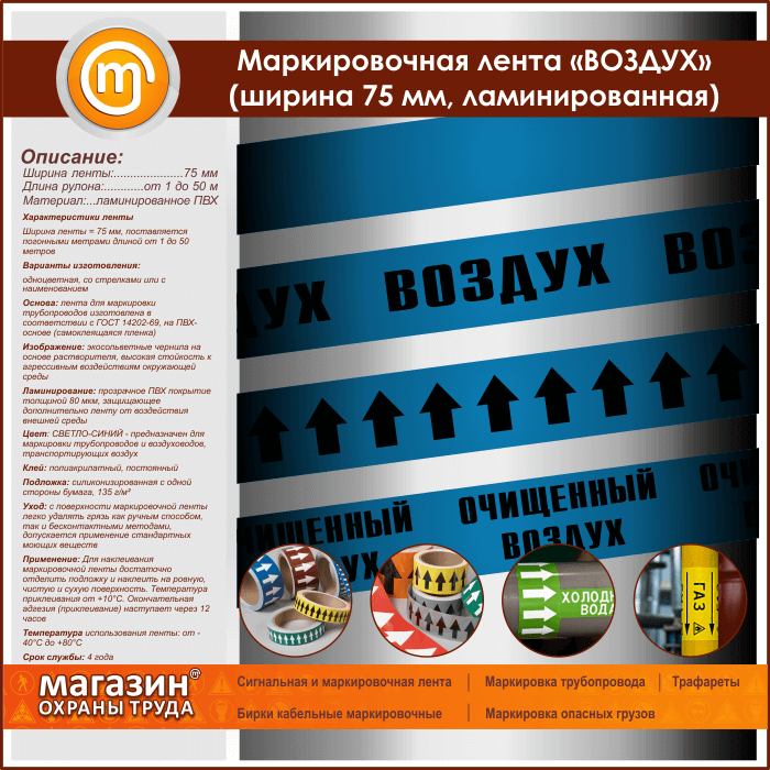 Маркировочная лента «ВОЗДУХ» (ширина 75 мм, самоклеящаяся плёнка с ламинированием) в Москве купить