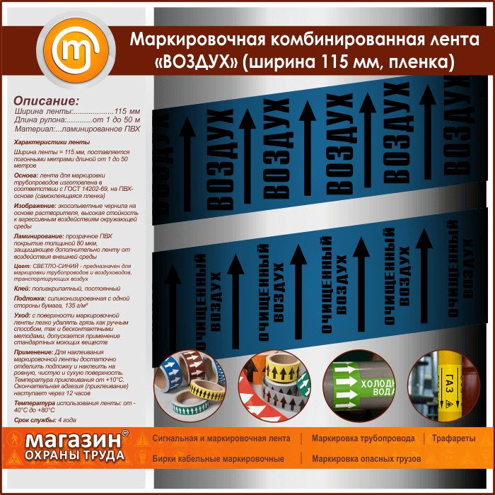 Маркировочная комбинированная лента «ВОЗДУХ» (ширина 115 мм, самоклеящаяся плёнка с ламинированием) в Москве купить